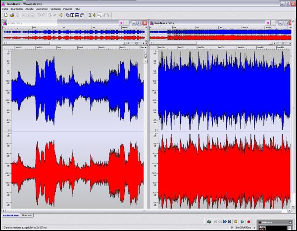 Links im untenstehenden Bild ein Screenshot eines Bluesstückes. Rechts ein typischer Vertreter aus dem Hardrockbereich.